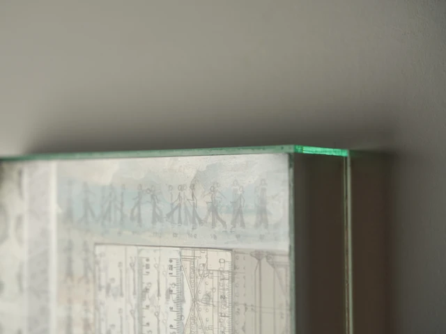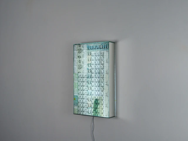 Employing mixed media, these artworks combine glass, glass mirrors, transparencies and paper, often with the addition of found objects or objects made using various kinds of clay. Some of the objects are internally illuminated or employ video projection, either projected from within or onto them from the outside, often in combination with audio installations. A house should be a place of safety. It is the delimited space where we dwell. The house is our primal universe, a place of memory. We too are the house.